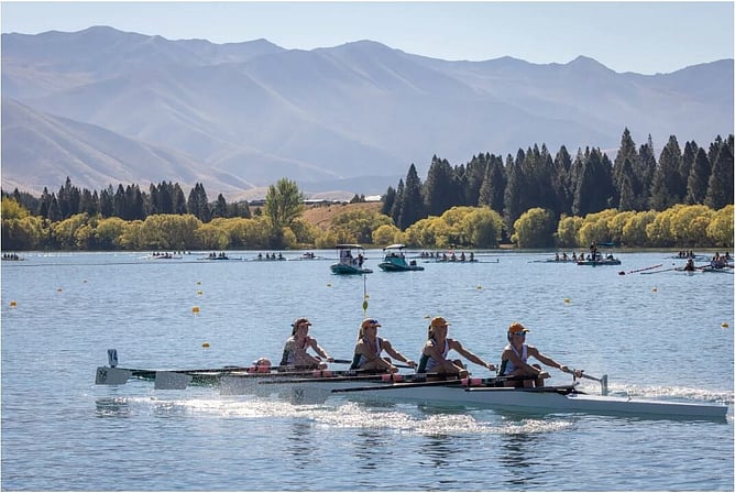 A total of 2,287 athletes from secondary schools across the country have descended on the stunning Lake Ruataniwha, ready to contest Australasia’s largest secondary schools sporting event. The excitement of yesterday’s Maadi Parade quickly gave way to focus and determination on the water, as crews got their first taste of racing. Low cloud greeted athletes early, but by mid-morning it had lifted to reveal calm, glassy conditions, a welcome sight that held for the duration of the day.